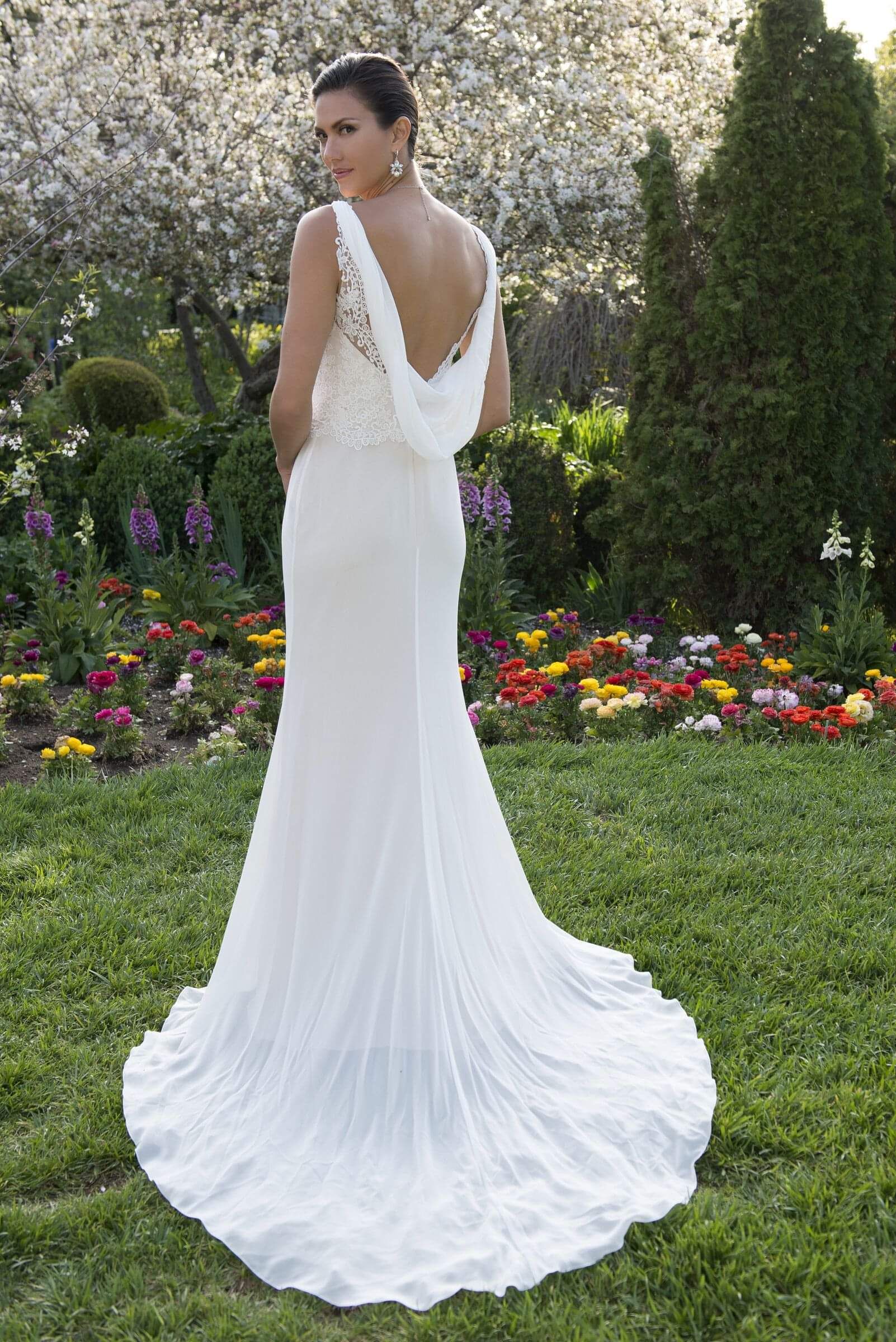 This dress style forms two diagonal across the bust area from shoulder to chest and create a v neckline.